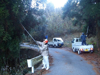 環境美化というとゴミ拾いなどを考えますが、長谷川地区は地元の方々のおかげでゴミが少ないところです。ただ中山間地域ですので、カーブや切り立った壁が多いためカーブミラーが多く、山手側からは雑木の枝が伸びてきます。もちろん地元の方々も手をかけてはいるのですが、個人では骨が折れるところを、わけもん会が引き受けてミラーの掃除や邪魔な枝の剪定、道路の補修等をやっています。