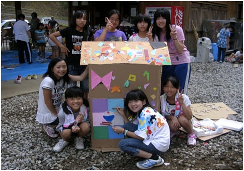 私たちは、校外ボランティアにも、たくさん参加しました。なかでも夏の国富町こども会キャンプは特に印象に残っています。最初はお互い緊張して上手く話せませんでしたが、キャンプファイアーの出し物を一緒に考えたり、カレーライスを作ったりする中で、冗談を言えるくらい仲良くなりました。