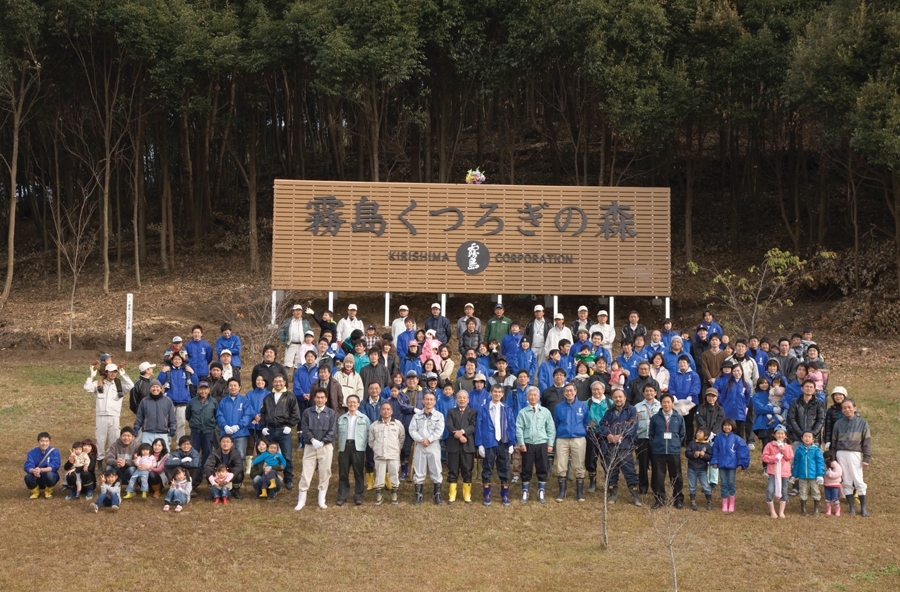 霧島酒造の製品に水は欠かせない自然資源です。同社は、水をつくる自然環境を守るための森づくり活動に参加しています。どんぐり株主を募り、寄せられた資金で大淀川上流域に植林し、自然林を再生させる「どんぐり1000年の森をつくる会」への協賛・協力を経て、より積極的な森林保全活動を行うため「企業による森林づくり事業」に参加し、都城の市有林約6ヘクタールを借りて、10年間にわたる植林活動等を行っています。霧島酒造は次世代に豊かな森と水を残すため地下水の保全活動をこれかも進めていきます。