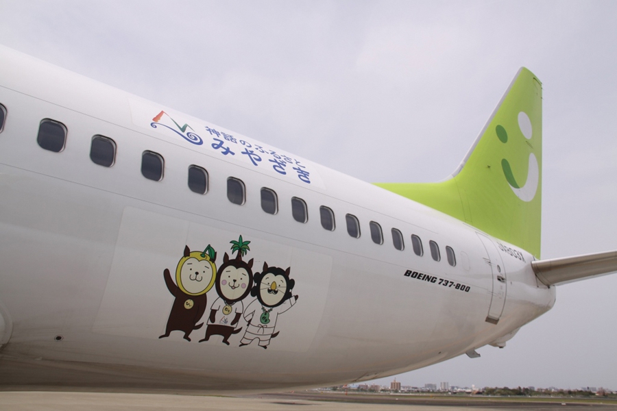自治体と共同で取組む1機1自治体1年間を基本とした当事業は、各自治体の名称やシンボルキャラクターを機体に描き、「綾ユネスコ エコパーク号」、「西米良カリコボーズ号」、「神話のふるさとみやざき号」がすでに就航し、自治体のPRを行っています。