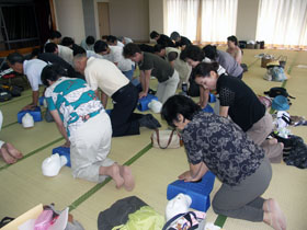 都城市においても、災害時におけるボランティアセンター設置・運営について、社協が運営・実施することが市の防災計画にも明記されており、平時におけるボランティアの育成や支援が重要になっています。そこで、都城ボランティア協会との協働で「災害救援ボランティア」養成のための研修会や講座を開催しています。この研修を機に、災害時に自分達の日頃のボランティア活動を活かし、“災害時に自分達に何ができるのか?”“自分達が何をしなければならないのか”を理解し、共通認識のもと「いざ!」という時に行動できるための準備を進めています。