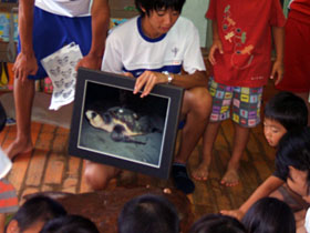 協力してくださってダイビングショップの方から写真をお借りしたり、市の文化財課から資料を提供してもらったり、それをパワーポイントにまとめてスライドを使ってプレゼンテーションしました。延岡でのアカウミガメの上陸数は減ってはいないんです。でも、海岸の侵食は進んでいますし、アカウミガメは絶滅危惧種です。そういうことの啓発活動が保護につながるのではないかと思います。