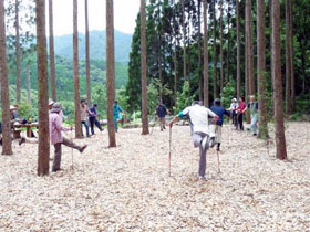 募集されている正式な協働事業の実績はありませんが、昨年は日南市や北郷町森林セラピー推進協議会・JR九州宮崎総合鉄道事業部・ホテル北郷フェニックスとの共催で「森林セラピー・ノルディックウォーキングツアー」を2回開催し、その内の1回は関東からのノルディックウォーキング・クラブのお客様と県内の参加者の交流を行いました。日南市内の体験型観光ツアーも盛り込み、東京から「大変楽しかったです。またぜひ宮崎にノルディックウォーキングツアーに行きたいと思います。」とのお手紙を頂きました。